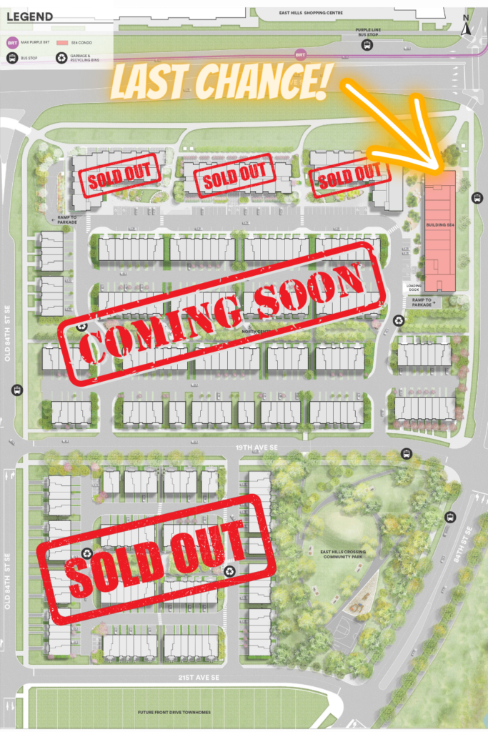 SE4 is the fourth and final tower launching at East Hills Crossing. The highly anticipated six-storey condo with rooftop amenities and skyline/mountain views. There are only 84 units in this building and this is your last chance to invest in high-rise at East Hills Crossing by Minto Communities. East Hills Crossing is the first privately funded LEED ND master-planned community in Calgary.