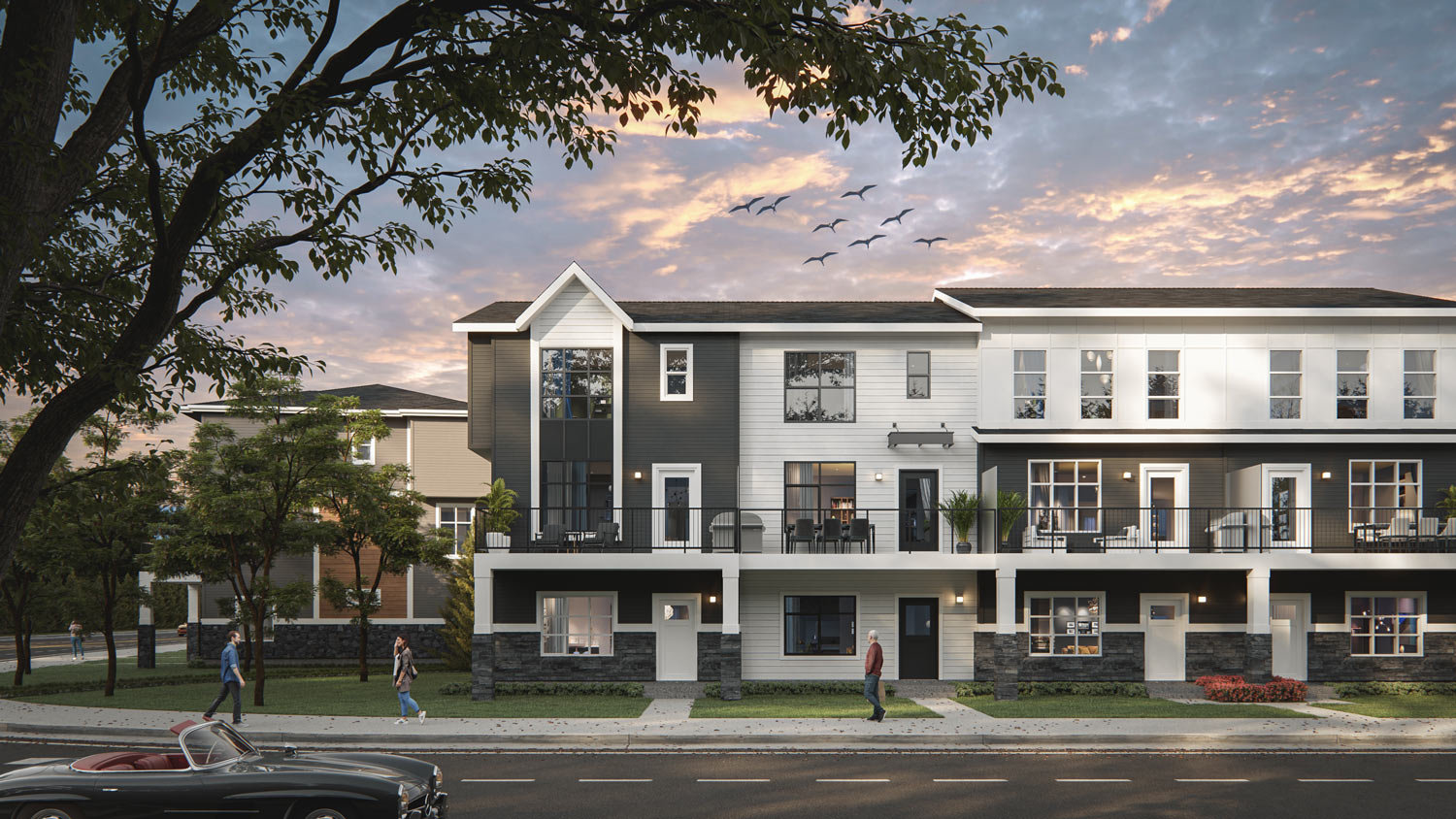 Inspired by modern simplicity, this elevation style offers a contemporary take on the traditional farmhouse. Crisp, sophisticated, and timeless, these new single family homes take subtle cues from historic farmhouse architecture, while offering a paired-back design that embodies values of simplicity, style, and sophistication.