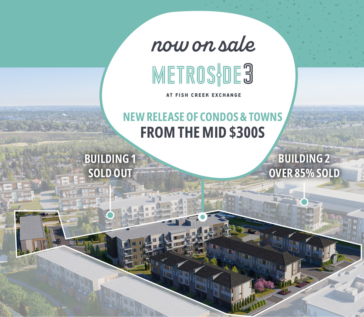 Fish Creek Exchange is a new Master-Planned Community located in Shawnee Park, just a little southwest of the bustling metropolis of downtown Calgary. Metroside2 is over 85% sold and the previous phases in this new development are SOLD OUT!