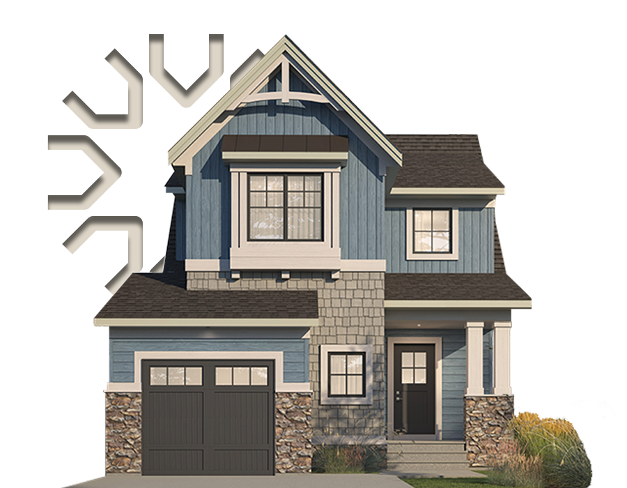 This rustic farmhouse design is inspired by the beauty of the foothills, proximity to the mountains, and the strong history of ranching in Alberta. These new single family homes are rooted, rich, and hearty, referencing the grandeur of the landscape that surrounds the Wildflower community with a textured palette and historically-inspired detailing.